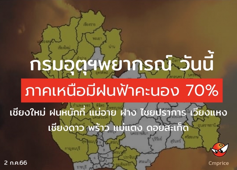 | • กรมอุตุฯพยากรณ์ วันนี้ภาคเหนือมีฝนฟ้าคะนอง 70% ของพื้นที่ |