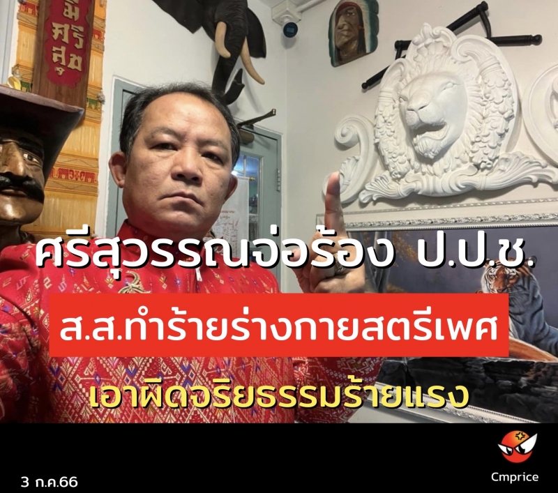| • ศรีสุวรรณจ่อร้อง ป.ป.ช.เอาผิดจริยธรรมร้ายแรง ส.ส.ทำร้ายร่างกายสตรีเพศ |