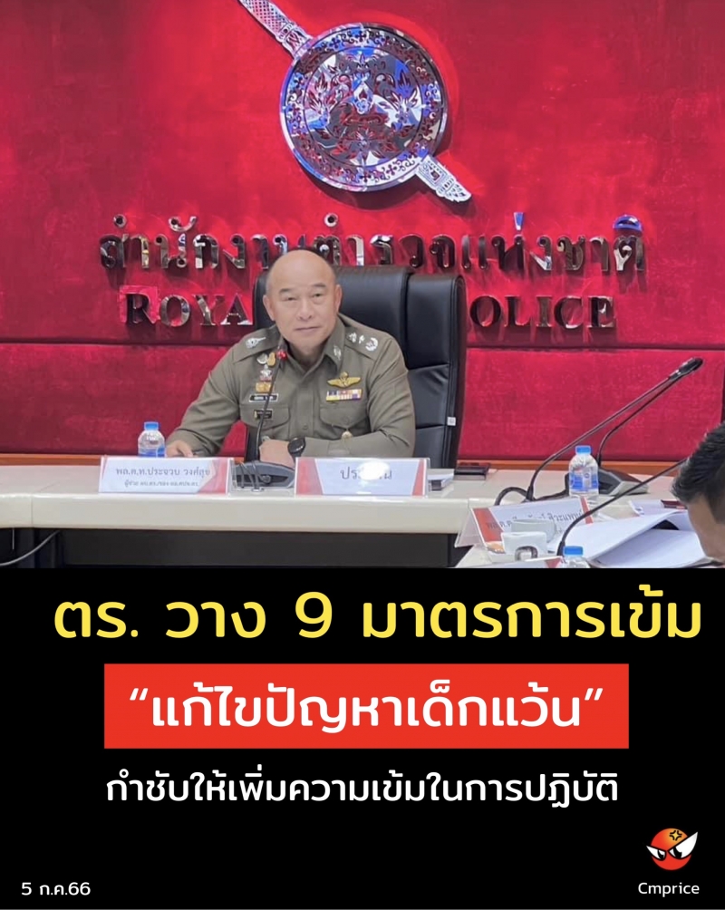 สำนักงานตำรวจแห่งชาติเร่งรัดป้องกันและปราบปรามวาง 9 มาตรการเข้ม “แก้ไขปัญหาเด็กแว้น” กำชับให้เพิ่มความเข้มในการปฏิบัติ