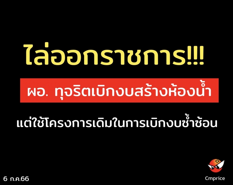 ไล่ออกราชการ ผอ.ทุจริตเบิกงบสร้างห้องน้ำนักเรียน จำนวน 10 ห้อง แต่ใช้โครงการเดิมในการเบิกงบซ้ำซ้อน
