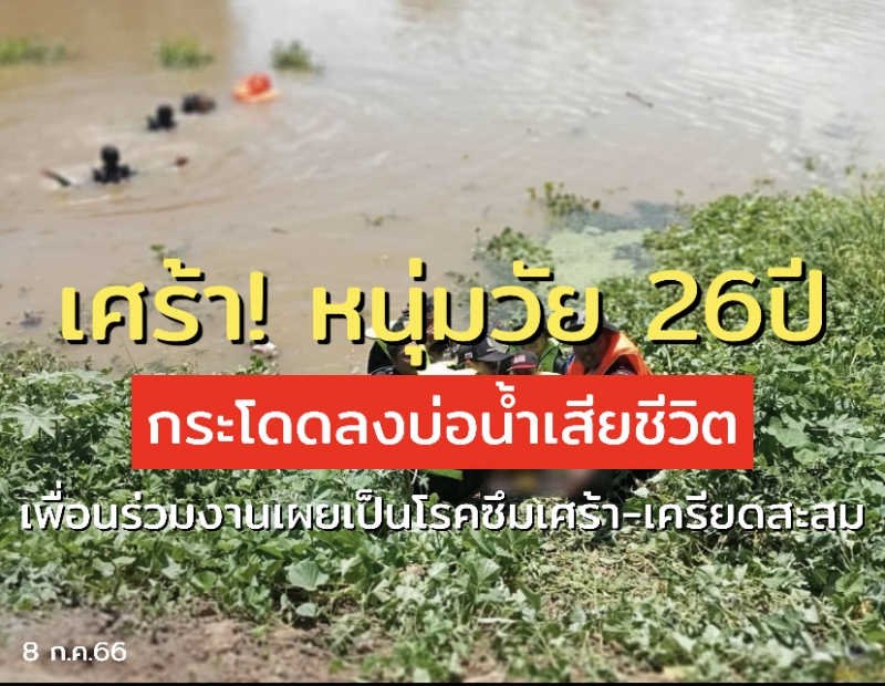 | • เศร้า! หนุ่มวัย 26ปี กระโดดน้ำเสียชีวิต เพื่อนร่วมงานเผยเป็นโรคซึมเศร้า-เครียดสะสม |