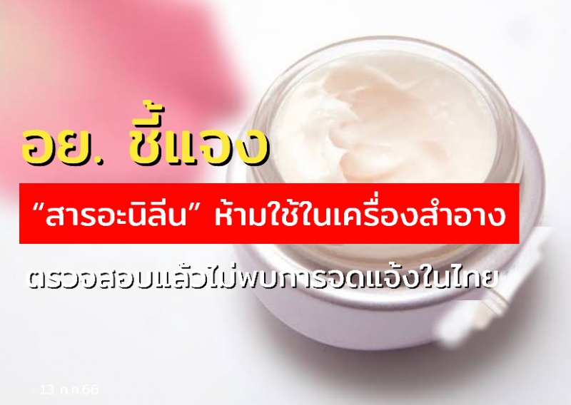 | • อย. แจง สารอะนิลีน ห้ามใช้ในเครื่องสำอาง ตรวจสอบแล้วไม่พบการจดแจ้งในไทย |
