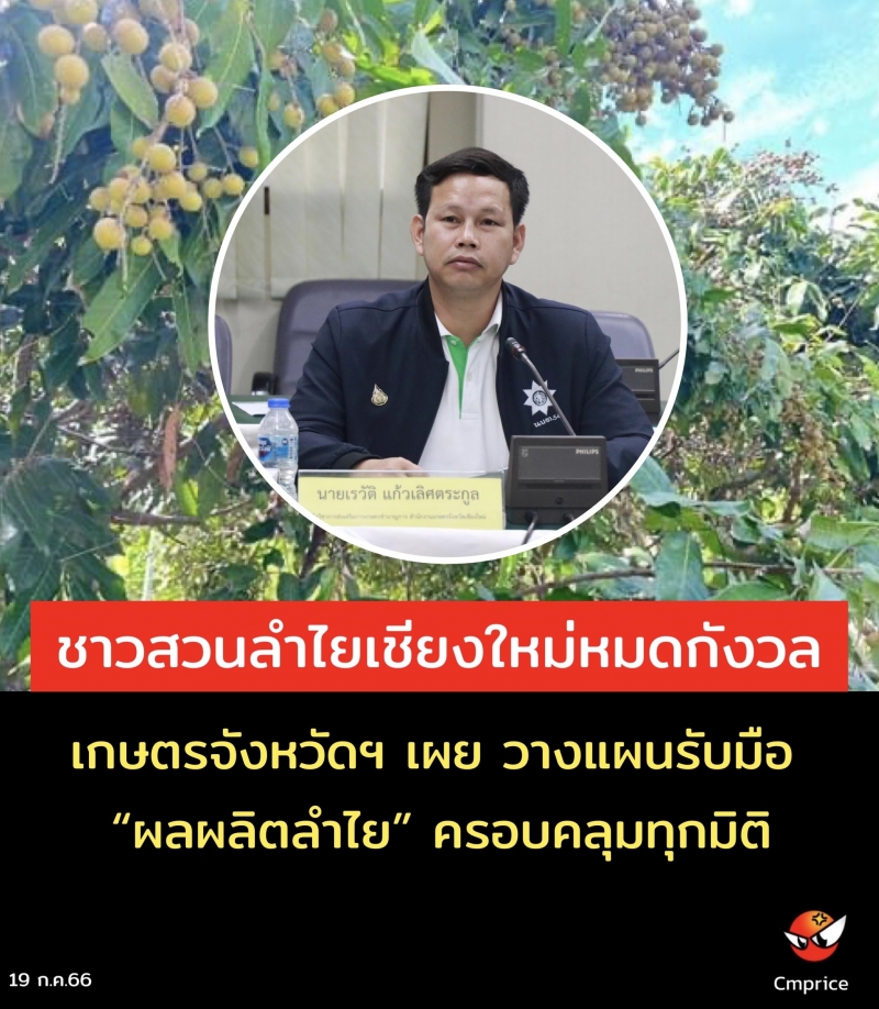 วันนี้ (18 ก.ค. 66) นายเรวัติ แก้วเลิศตระกูล นักวิชาการส่งเสริมการเกษตรชำนาญการ สำนักงานเกษตรจังหวัดเชียงใหม่ เปิดเผยในการแถลงข่าวสื่อมวลชนประจำสัปดาห์จังหวัดเชียงใหม่ ถึงสถานการณ์ผลิตลำไยในฤดูปีการผลิต 2566 ว่า ภาพรวมผลผลิตลำไยเฉลี่ยลดลงเล็กน้อย จากเดิม 878 กิโลกรัมต่อไร่ เป็น 824 กิโลกรัมต่อไร่เนื่องจากผลผลิตลำไยในฤดูขณะติดผลเล็ก ประกอบกับเจอฝนทิ้งช่วง สภาพอากาศร้อนจัด ทำให้ผลลำไยร่วง โดยผลผลิตลำไยในฤดูรวมจะลดลงจากเดิม 269,856 ตัน เป็น 253,295 ตัน โดยคาดการณ์ว่าอำเภอทางโซนใต้ของจังหวัดจะได้เก็บเกี่ยวผลผลิตลำไยในฤดูก่อน ในห้วงกลางเดือนกรกฎาคม เป็นต้นไป และช่วงที่จะมีผลผลิตมกาที่สุดคือในเดือนสิงหาคม