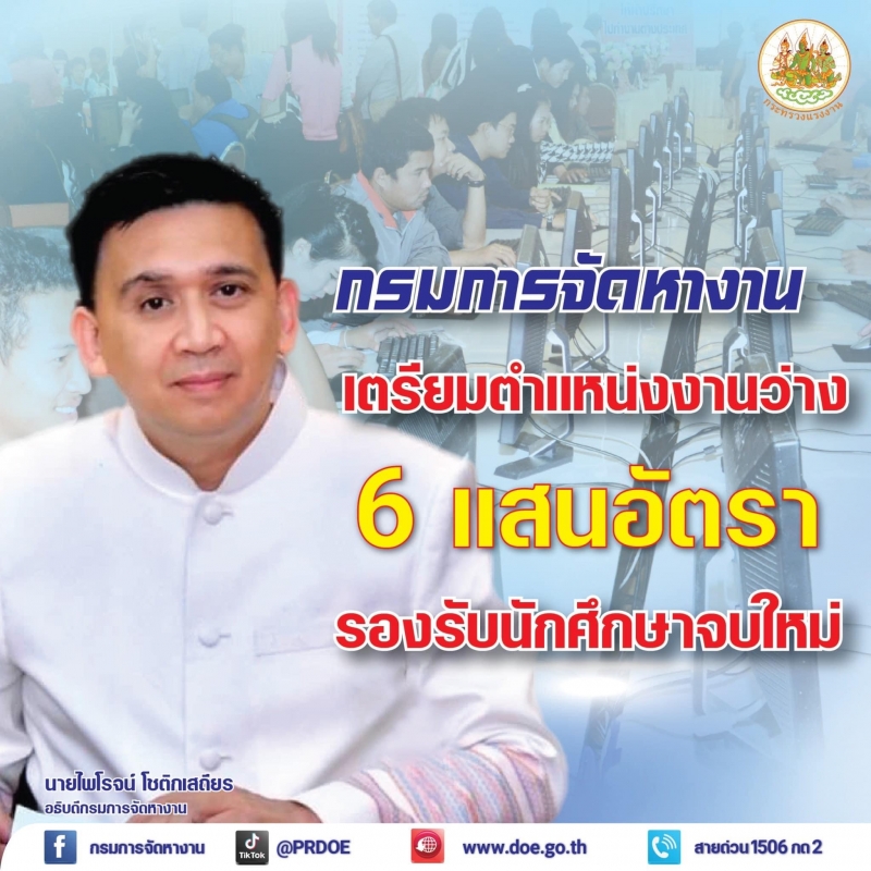 อธิบดีกรมการจัดหางาน กล่าวต่อไปว่า หลังจากสถานการณ์โควิดคลี่คลาย รัฐบาลมีนโยบายฟื้นฟูเศรษฐกิจของประเทศ ภาคอุตสาหกรรมการผลิต ภาคท่องเที่ยว โรงแรมและบริการ ต่างมีความต้องการแรงงานหลากหลายตำแหน่งเพื่อขับเคลื่อนกิจการจำนวนมาก บางส่วนยังต้องนำแรงงานต่างด้าวจากประเทศเพื่อนบ้านเข้ามาทดแทนในตำแหน่งงานที่คนไทยไม่ทำ ซึ่งเชื่อว่านักเรียน นักศึกษาจบใหม่กว่า 5 แสนอัตรา ที่มีตั้งแต่ระดับปวช. ปวส. และปริญญาตรีกลุ่มนี้จะเป็นส่วนสำคัญที่ช่วยให้ปัญหาขาดแคลนแรงงานคลี่คลายลง โดยสามารถสมัครงานได้ที่เว็บไซต์“ไทยมีงานทำ.doe.go.th” หรือแอปพลิเคชัน “ไทยมีงานทำ” โดยไม่มีค่าใช้จ่าย