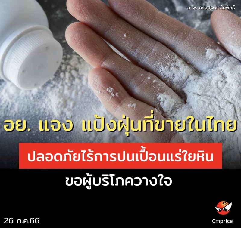 อย. แจง แป้งฝุ่นที่ขายในไทยปลอดภัย ไร้การปนเปื้อนแร่ใยหิน ขอผู้บริโภควางใจ