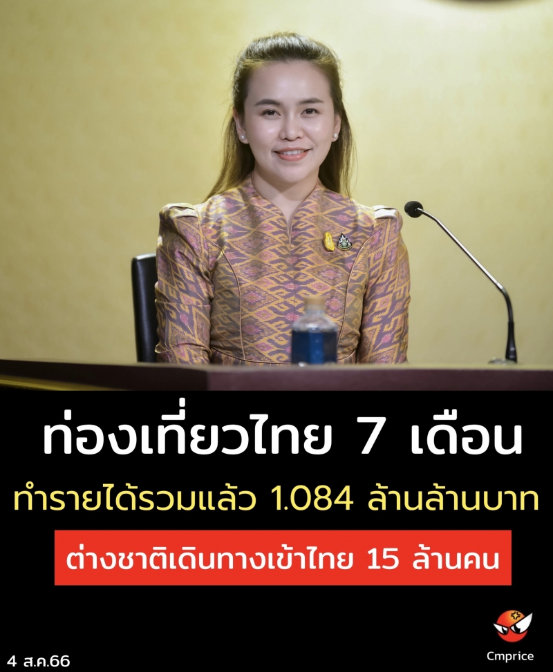ท่องเที่ยวไทย 7 เดือนทำรายได้รวมแล้ว 1.084 ล้านล้านบาท ต่างชาติเดินทางเข้าไทย 15 ล้านคน ททท.จัดงานเทศกาลเที่ยวเมืองไทยกระตุ้นการเดินทางในประเทศต่อเนื่อง