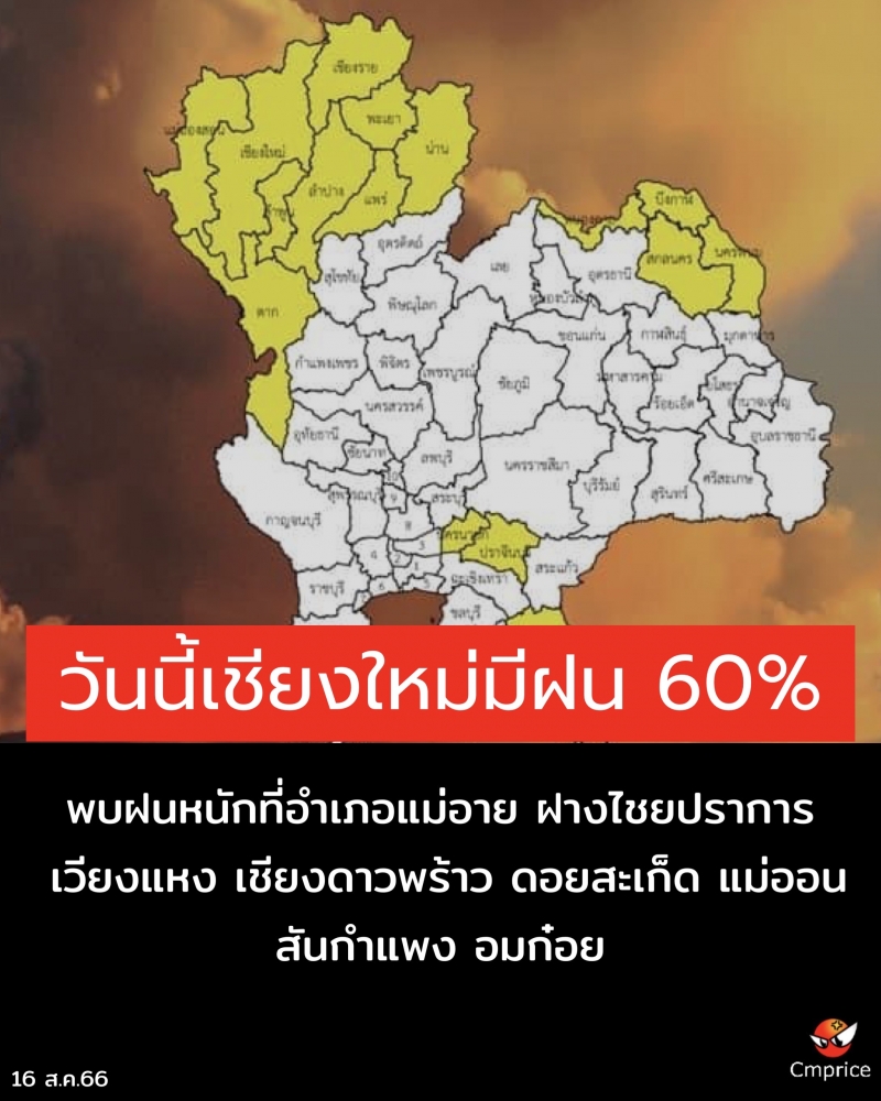 | • พยากรณ์อากาศวันนี้เชียงใหม่มีฝน60% |
