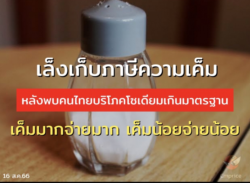 กรมสรรพสามิต หารือ กลุ่มแพทย์ เล็งเก็บภาษีความเค็มหลังพบคนไทยบริโภคโซเดียมเกินมาตรฐาน