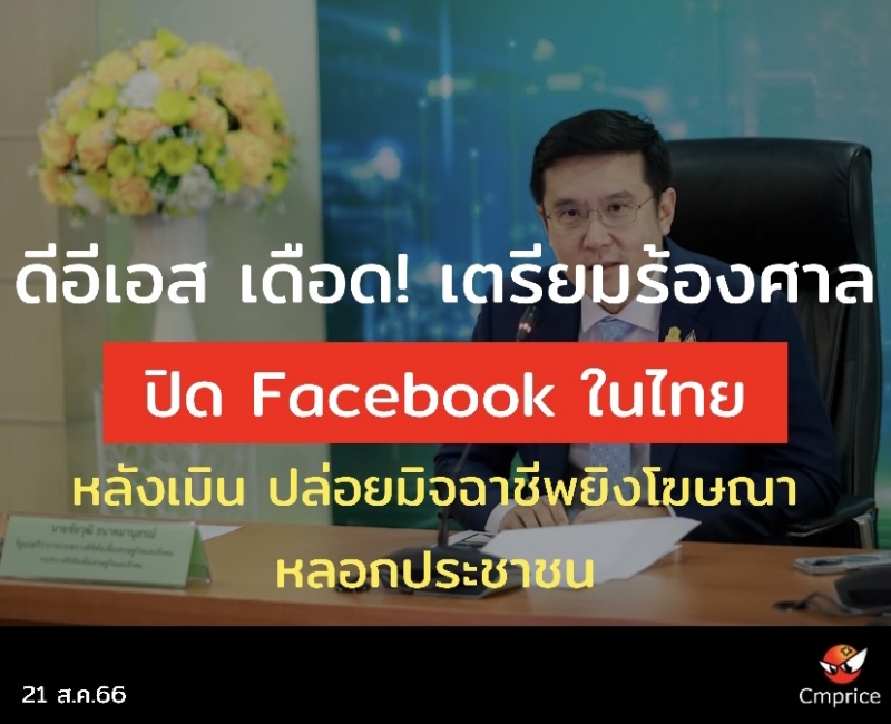 .“ดีอีเอส อยู่ระหว่างการเรียบเรียงหลักฐานจากผู้กระทำความผิดบนแพลตฟอร์มเฟสบุ๊คเพื่อส่งศาลให้มีการปิดเฟสบุ๊คภายในสิ้นเดือนนี้และขอให้ศาลสั่งปิดเฟสบุ๊คภาคใน 7 วัน โดยการกระทำผิดของเฟสบุ๊ค เนื่องจากเฟสบุ๊ค ได้รับการโฆษณาจากผู้กระทำความผิดมิจฉาชีพในการลงโฆษณา และหลอกลวงประชาชนให้หลงเชื่อในการลงทุนและซื้อสินค้าผ่านเฟสบุ๊ค เมื่อลูกค้าหลงเชื่อและชำระค่าสินค้าแล้วได้สินค้าไม่ตรงปก ที่ผ่านมามีผู้เสียหายจำนวนมากกว่า200,000 รายหรือประมาณ 95 เปอร์เซ็นต์จาก 300,000 ราย มีมูลค่าความเสียหายมากกว่า 10,000 ล้านบาท ถ้าเฟสบุ๊คไม่ช่วยเหลือประเทศไทย ถ้าเขาอยากทำธุรกิจในประเทศไทย เขาต้องแสดงความรับผิดชอบกับสังคมไทย ซึ่งที่ผ่านมากระทรวงได้คุยกับเฟสบุ๊คตลอดเวลา แต่กลับไม่สกรีนผู้มาลงโฆษณาทำให้ประชาชนชาวไทยได้รับความเสียหายมากกว่า 100,000 ล้านบาท” ชัยวุฒิ กล่าว