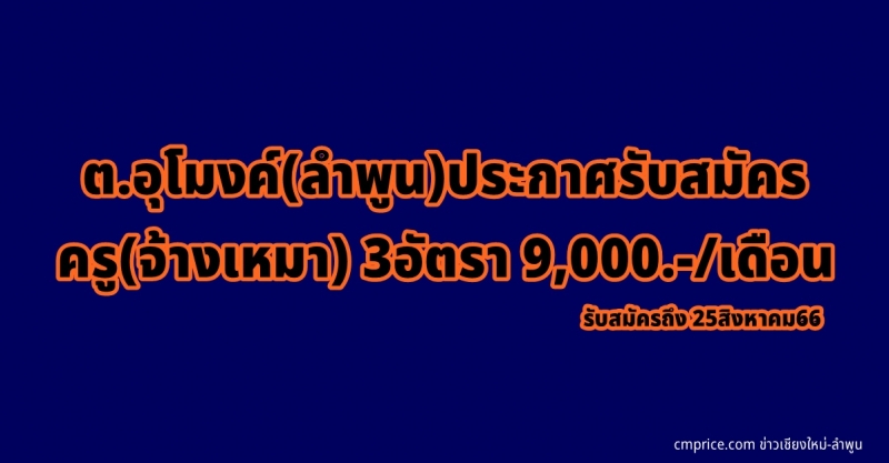 ต.อุโมงค์(ลำพูน)ประกาศรับสมัครครู(จ้างเหมา) สมัครถึงวันที่ 25 สิงหาคม 66