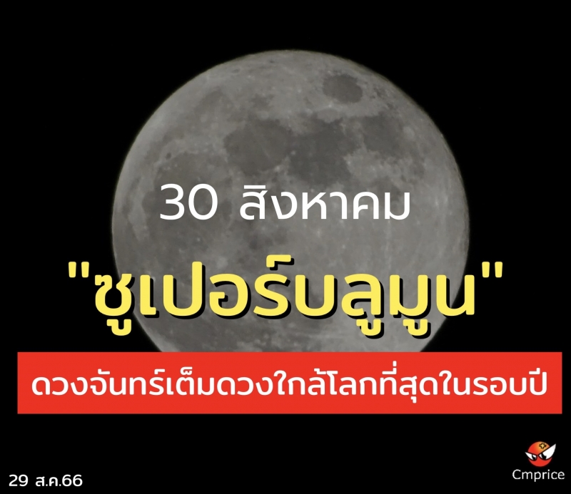 | • 30 สิงหาคมนี้ "ซูเปอร์บลูมูน" ดวงจันทร์เต็มดวงใกล้โลกที่สุดในรอบปี |