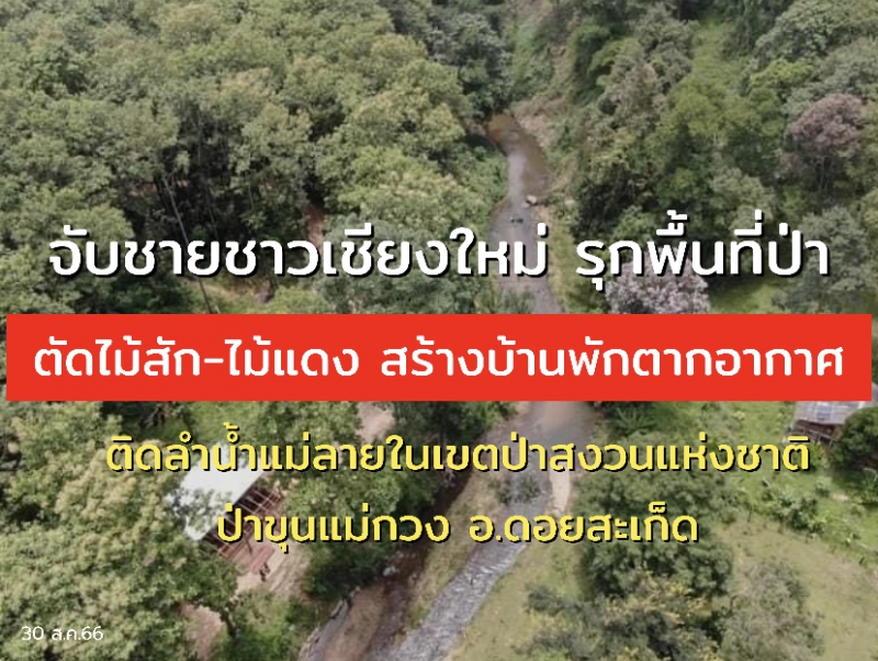 จับชายชาวเชียงใหม่ รุกพื้นที่ป่าตัดไม้สัก-ไม้แดง สร้างบ้านพักตากอากาศติดลำน้ำแม่ลายในเขตป่าสงวนแห่งชาติป่าขุนแม่กวง อ.ดอยสะเก็ด
