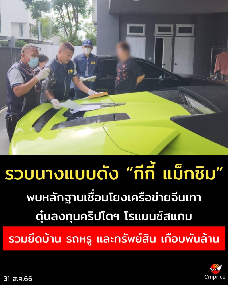 ตร.สอบสวนกลาง ร่วม ปปง. อัยการ ระดมกำลังกว่า 200 นาย เปิดปฏิบัติการค้น 30 จุด กทม. สมุทรปราการ และอุดรธานี บุกจับเครือข่ายจีนเทา องค์กรอาชญากรรมข้ามชาติ ตุ๋นลงทุนคริปโตฯ โรแมนซ์สแกม ฟอกเงิน รวบนางแบบดัง “กีกี้ แม็กซิม” หลังพบหลักฐานเชื่อมโยงถึง รวมยึดบ้านกว่า 10 หลัง รถหรู และทรัพย์สิน เกือบพันล้าน