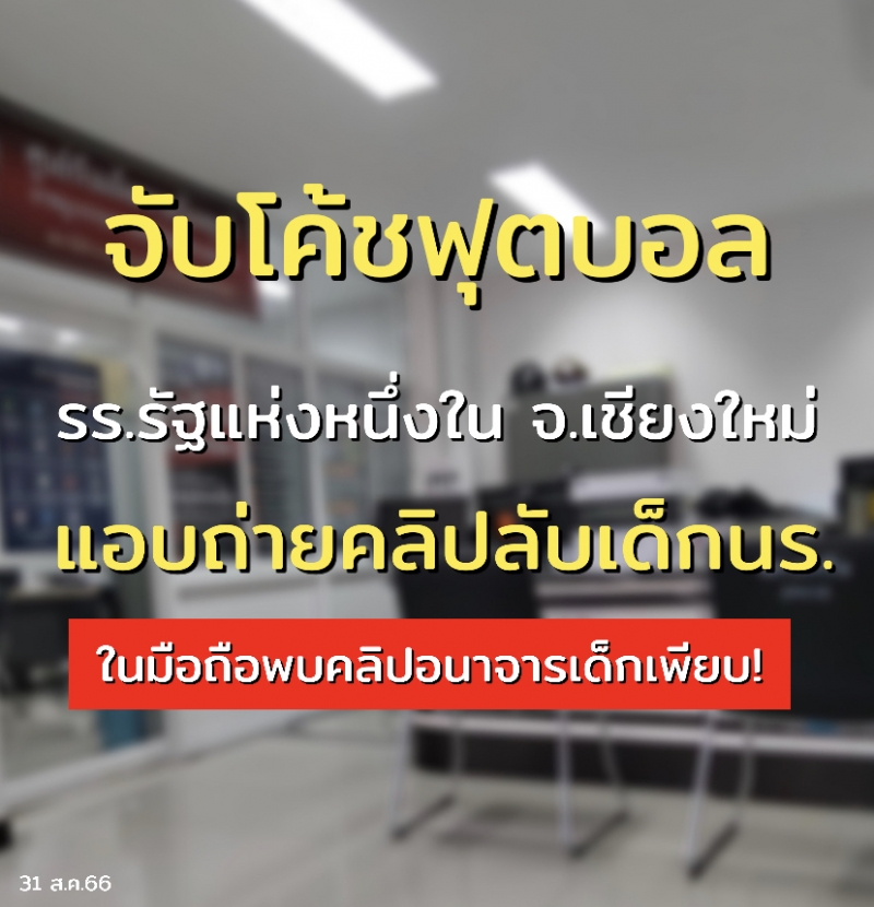 จับโค้ชฟุตบอลชายโรงเรียนดังเชียงใหม่ แอบถ่ายคลิปลับเด็กนร. ตรวจสอบมือถือพบคลิปอนาจารเด็กเพียบ