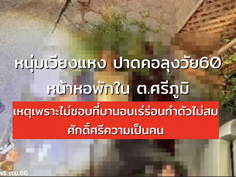 เมื่อเวลา 04.00 น. วันที่ 31 ส.ค.66 ร.ต.อ.นพดล ไชยนันตา รอง สว.(สอบสวน) สภ.เมืองเชียงใหม่ ได้รับแจ้งเหตุคนถูกทำร้ายด้วยมีด เสียชีวิตที่หน้าหอพักแห่งหนึ่ง ต.ศรีภูมิ อ.เมือง จ.เชียงใหม่ จึงพร้อมกับ น.20 ชุดสืบสวนเวร นายแพทย์เวรและเจ้าหน้าที่ พฐ.จว.เชียงใหม่ ตรวจที่เกิดเหตุ ในที่เกิดเหตุพบศพชายไม่ทราบชื่อและนามสกุล อายุประมาณ 60 ปี นอนเสียชีวิตอยู่ในที่เกิดเหตุ พบร่องรอยบาดแผลคล้ายถูกอาวุธมีดปาดบริเวณลำคอ และรอยกองเลือดของผู้ตายในบริเวณที่เกิดเหตุ จึงได้ตรวจที่เกิดเหตุถ่ายภาพไว้แล้วจะได้สืบสวนสอบสวนติดตามตัวคนร้ายมาดำเนินคดี