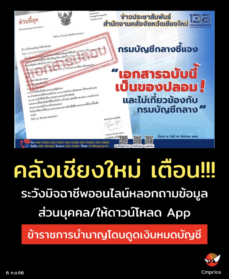 | • คลังเชียงใหม่ เตือนภัยมิจฉาชีพออนไลน์ |