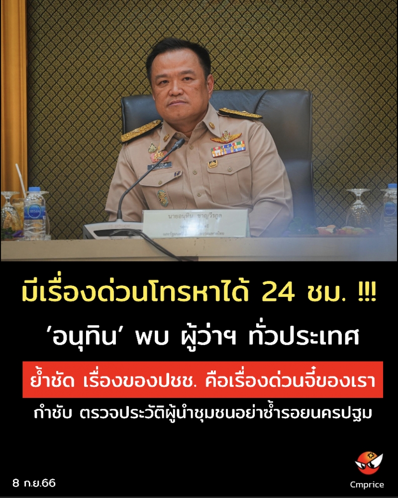 | • มท.1 พบ ผู้ว่าฯ ทั่วประเทศ ย้ำชัด เรื่องของประชาชน คือเรื่องด่วนจี๋ของเรา ยืนยัน มีเรื่องด่วนโทรหาได้ 24 ชม. |