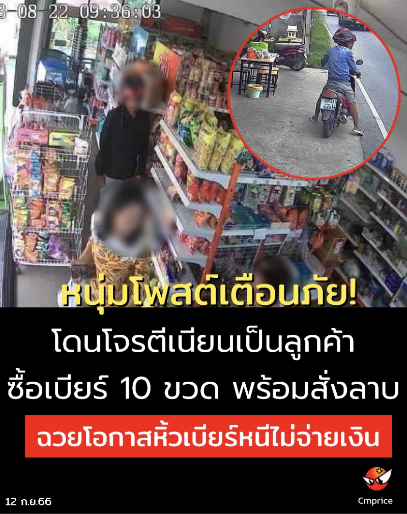 วานนี้11 ก.ย.66 ผู้ใช้เฟซบุ๊กชื่อ “ชายผู้รักครอบครัว กุ้งวีแทน แทนกลาง” โพสต์รูปผู้ชายที่เป็นมิจฉาชีพพร้อมบอกเล่าเรื่องราวเตือนภัยหลังจากที่เมื่อช่วงบ่ายวานนี้(10 ก.ย.66) ผู้ชายคนดังกล่าวตามรูปได้ทำทีเป็นลูกค้าเข้าไปขอซื้อเบียร์จำนวน 10 ขวด ที่ร้านของแม่ผู้โพสต์ และสั่งซื้อลาบเพิ่ม จากนั้นอาศัยจังหวะช่วงที่แม่ของผู้โพสต์กำลังปรุงลาบให้ฉวยโอกาส ขี่รถจักรยานยนต์ออกไปพร้อมเบียร์ทั้ง 10 ขวด โดยไม่จ่ายเงิน ซึ่งสร้างความเสียหายให้กับแม่ของผู้โพสต์เป็นอย่างมาก จึงนำเรื่องราวมาโพสต์เตือนภัย และขอให้ช่วยแจ้งเบาะแส