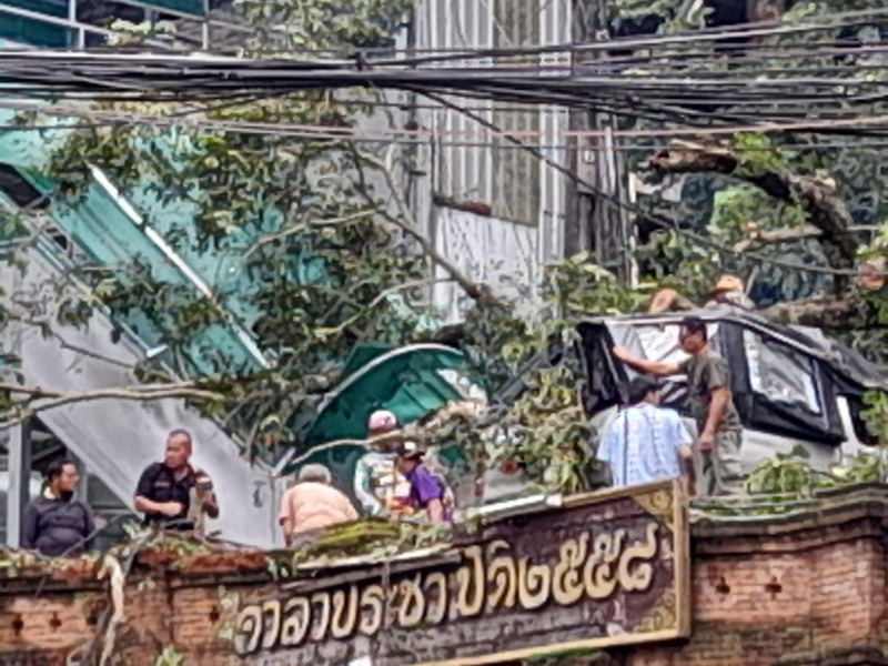 | • ระทึก!!! ต้นมะแฟนใหญ่กว่า 3 คนโอบ "วัดพระธาตุดอยสุเทพ" โค่นล้มทับรถยนต์กระบะของวัดเสียหาย 2 คัน และรถตู้ของนักท่องเที่ยวอีก 1 คัน เคราะห์ดีไม่มีใครได้รับอันตราย |