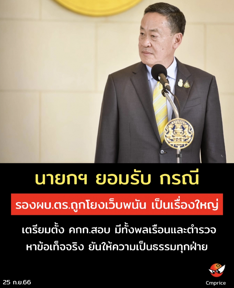 | • นายกฯ ยอมรับ กรณี รองผบ.ตร.ถูกโยงเว็บไซต์พนันออนไลน์ เป็นเรื่องใหญ่ เตรียมตั้ง คกก.สอบ |