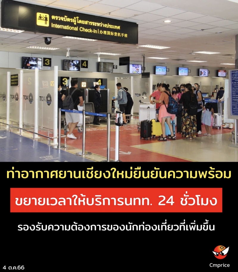 ท่าอากาศยานเชียงใหม่พร้อมขยายเวลาให้บริการ นักท่องเที่ยว 24 ชั่วโมง รองรับความต้องการของนักท่องเที่ยวที่เพิ่มขึ้น