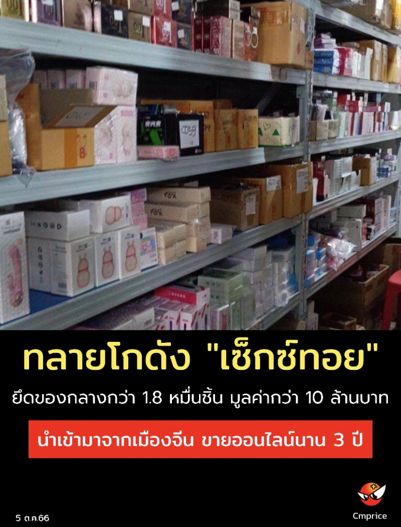 ทลายโกดัง"เซ็กซ์ทอย"ยึดของกลางกว่า 1.8 หมื่นชิ้น รวมมูลค่ากว่า 10 ล้านบาท รับสารภาพนำเข้ามาจากเมืองจีน ขายออนไลน์นานกว่า 3 ปี