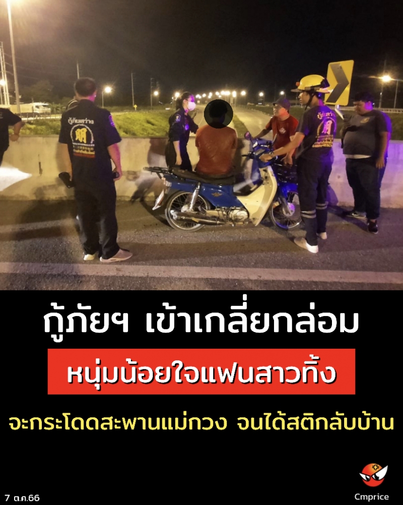 | • กู้ภัยฯเข้าเกลี่ยกล่อม หนุ่มน้อยใจแฟนสาวทิ้ง จะกระโดดสะพานแม่กวง จนได้สติกลับบ้าน |