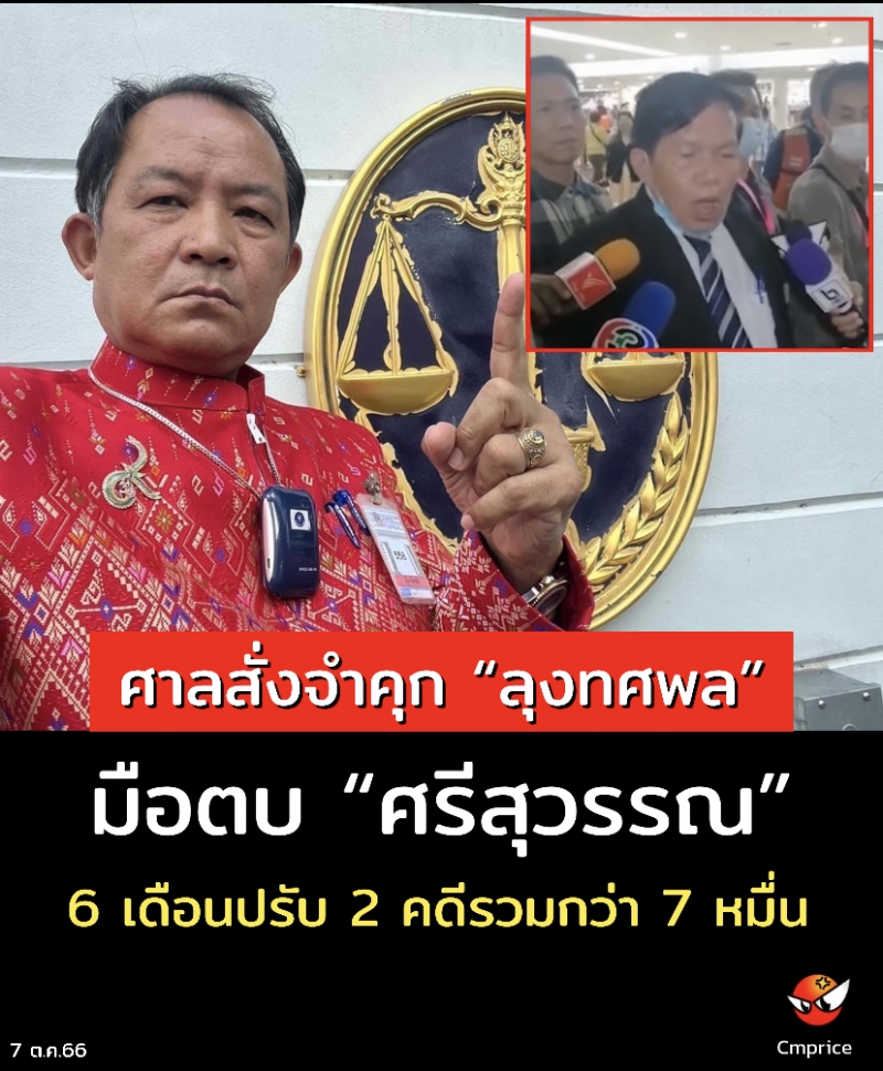 นายศรีสุวรรณ จรรยา ผู้นำองค์กรรักชาติ รักแผ่นดิน เปิดเผยว่า จากกรณีที่นายทศพล ธนานนท์โสภณกุล อาจารย์เกษียณราชการ อายุ 67 ปี ก่อเหตุบุกเข้าไปทำร้ายร่างกายนายศรีสุวรรณ จรรยา เลขาธิการสมาคมองค์การพิทักษ์รัฐธรรมนูญไทย เมื่อวันที่ 11 พ.ค.66 ณ หน้าสำนักงาน กกต. ศูนย์ราชการฯ อาคาร B ภายหลังจากที่ไปให้ถ้อยคำต่อคณะกรรมการการเลือกตั้ง (กกต.) ประเด็นการร้องเรียนให้ตรวจสอบนโยบายแจกเงินดิจิทัล 10,000 บาท ของพรรคเพื่อไทยนั้น