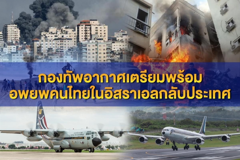 | • กองทัพอากาศ เตรียมเครื่องบิน กำลังพล​ และยุทโธปกรณ์ พร้อมอพยพคนไทยในอิสราเอลกลับประเทศ |