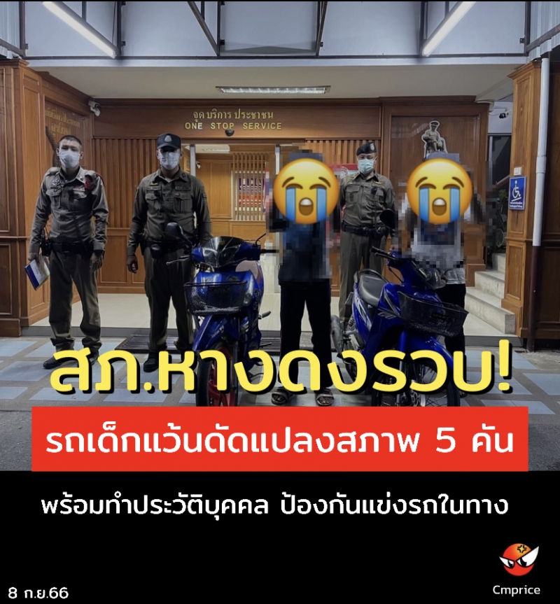 | • สภ.หางดงรวบแว้นดัดแปลงสภาพ 5 คัน พร้อมทำประวัติบุคคล ป้องกันแข่งรถในทาง |