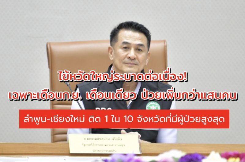สถานการณ์ไข้หวัดใหญ่ระบาดหนัก 10 จังหวัด เฉพาะเดือน ก.ย. ยอดผู้ป่วยสูงกว่าแสนราย “หมอชลน่าน” สั่งหน่วยงานที่เกี่ยวข้องเตรียมขยายสิทธิเด็กที่ควรได้รับวัคซีนจากเดิม 6 เดือน – 2 ปี ออกไปเป็น 5 ปี สำรองวัคซีน เร่งฉีดกลุ่มเสี่ยง 608 และหญิงตั้งครรภ์ พร้อมเร่งอย.บรรจุ ฟาวิพิราเวียร์ ในบัญชียาหลักแห่งชาติ เพื่อเตรียมพร้อมเป็นทางเลือกในการรักษาไข้หวัดใหญ่