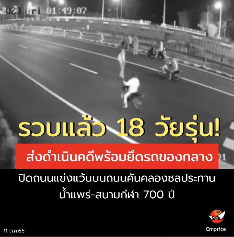 จากกรณีที่ มีพลเมืองดี ชาวต.น้ำแพร่ อ.หางดง จ..เชียงใหม่ เปิดเผยคลิปกล้องวงจรปิด กลุ่มวัยรุ่นชาย-หญิง ใช้รถจยย.รวมกว่า 10 กว่าคัน แข่งรถกันบนถนนสายคันคลองชลประทานน้ำแพร่-สนามกีฬา 700 ปี เมื่อเวลา 01.47 น.กลางดึกคืนวันที่ 6 ต.ค.2566 ที่ผ่านมา สร้างความเดือดร้อนและหวาดกลัวให้กับประชาชน