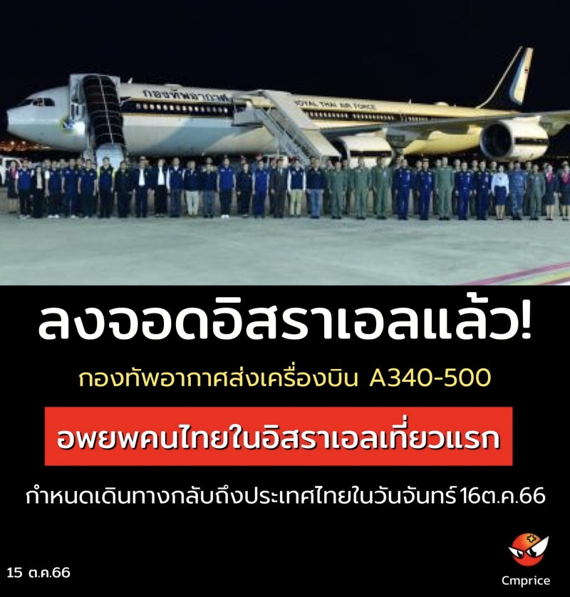 | • ลงจอดอิสราเอลแล้ว! กองทัพอากาศส่งเครื่องบิน A340-500 อพยพคนไทยในอิสราเอลเที่ยวแรก |