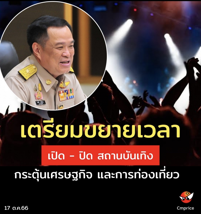 | • มท.1 เตรียมขยายเวลาเปิด - ปิด สถานบันเทิง กระตุ้นเศรษฐกิจ และการท่องเที่ยว |
