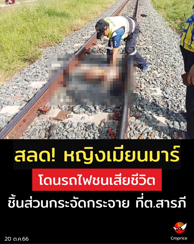 | • สลด! หญิงเมียนมาร์ โดนรถไฟชนเสียชีวิต ชิ้นส่วนกระจัดกระจาย ที่ต.สารภี |