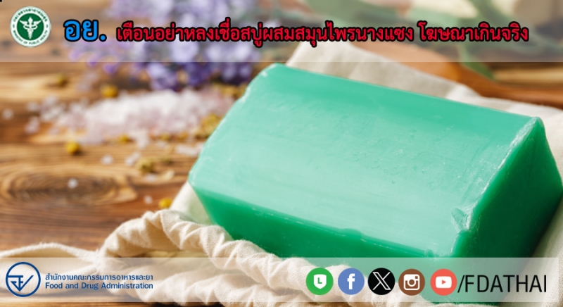 ขอเตือนผู้บริโภคระวังในการเลือกซื้อ เลือกใช้ อย่าหลงเชื่อโฆษณาอวดอ้างสรรพคุณว่าใช้แล้วจะรักษาสิว ฝ้า ทำลายเชื้อแบคทีเรีย กระตุ้นการสร้างเซลล์ใหม่ ซึ่งเป็นการกล่าวอ้างที่โอ้อวดเกินจริง เนื่องจากสบู่จัดเป็นผลิตภัณฑ์เครื่องสำอาง มีวัตถุประสงค์การใช้เพื่อทำความสะอาดผิวหน้า ผิวกาย โดยใช้แล้วล้างออกด้วยน้ำสะอาดเพื่อชะล้างเหงื่อไคล ฝุ่นละออง และสิ่งสกปรกในชีวิตประจำวันเท่านั้น โฆษณาที่โอ้อวดเกินจริงลักษณะนี้ อาจมีอันตรายจากการลักลอบใส่สารห้ามใช้หรือสารที่เป็นอันตราย ทั้งนี้ เมื่อซื้อเครื่องสำอางมาแล้ว เพื่อความปลอดภัย ขอแนะนำให้ทดสอบการแพ้ก่อนใช้ โดยการทาเครื่องสำอางในปริมาณเล็กน้อยที่บริเวณท้องแขน หรือหลังใบหู แล้วทิ้งไว้ 24 - 48 ชั่วโมง หากใช้แล้ว มีความผิดปกติต้องหยุดใช้ทันที แล้วนำผลิตภัณฑ์ไปปรึกษาแพทย์หรือเภสัชกร อย่าหลงเชื่อ