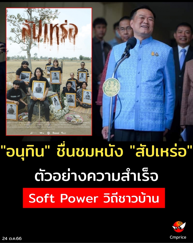 | • "อนุทิน" ชื่นชมหนัง "สัปเหร่อ" ตัวอย่างความสำเร็จ Soft Power วิถีชาวบ้าน ขอนักปั้น Soft Power ไทย ดูเป็นแบบอย่าง |