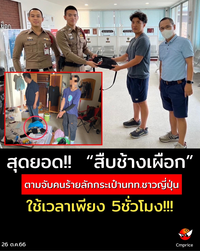 | • สุดยอด!! สืบช้างเผือก ตามจับคนร้ายลักกระเป๋านทท.ชาวญี่ปุ่น ได้ใน 5ชั่วโมง |