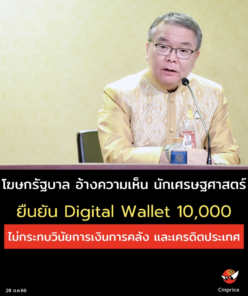 โฆษกรัฐบาล ยก ความเห็น นักเศรษฐศาสตร์ ชี้ นโยบายเติมเงิน 10,000 บาท ผ่าน Digital Wallet ให้ประชาชนใช้จ่าย ไม่กระทบวินัยการเงินการคลัง และ Credit Rating ของประเทศ