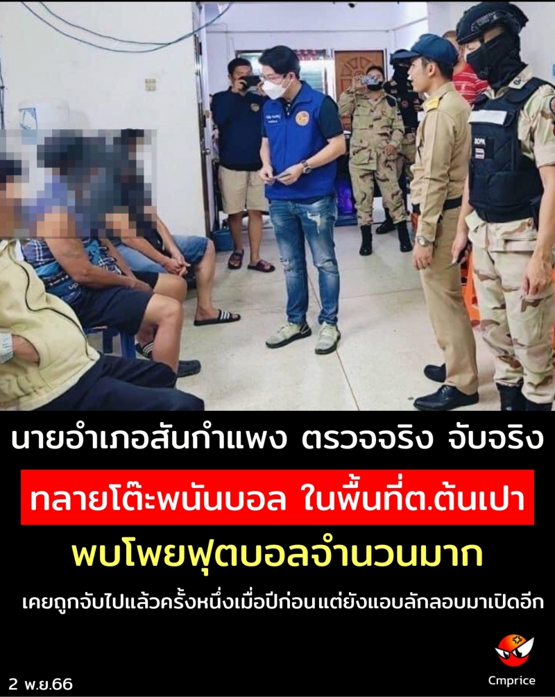 นายอำเภอสันกำแพง ตรวจจริง จับจริง ทลายโต๊ะพนันบอล