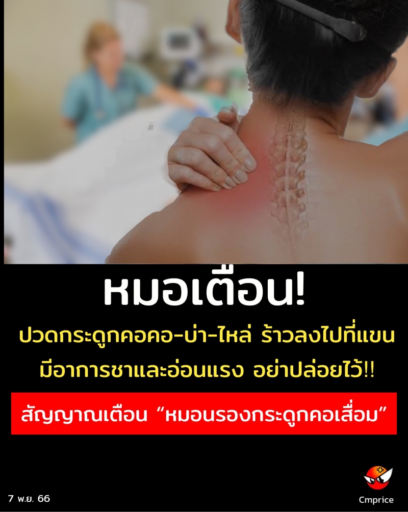| • หมอเตือน! ปวดกระดูกคอคอ-บ่า-ไหล่ ร้าวลงไปที่แขน มีอาการชาและอ่อนแรง อย่าปล่อยไว้ |
