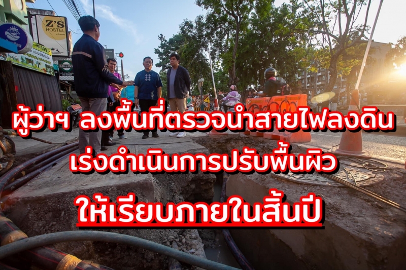 | • ผู้ว่าฯ ลงพื้นที่ตรวจนำสายไฟลงดิน เร่งดำเนินการปรับพื้นผิวให้เรียบภายในสิ้นปี |