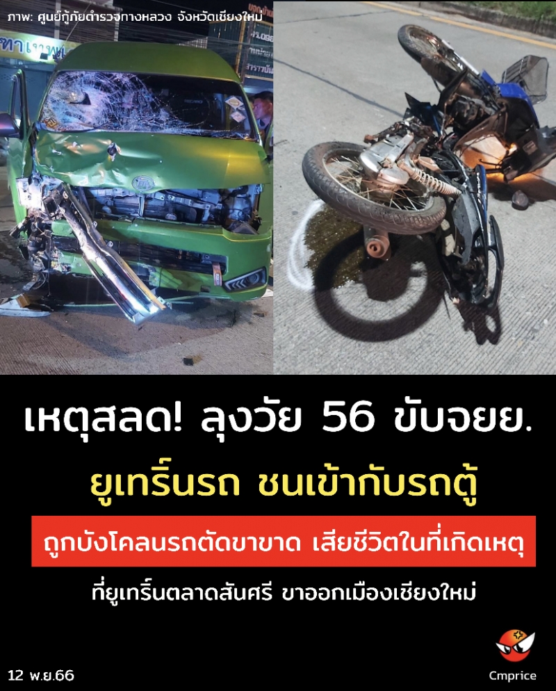 เมื่อวันที่ 12 พ.ย. 2566 เวลาประมาณ 19.00 น. ศูนย์วิทยุกู้ภัยตำรวจทางหลวงเชียงใหม่