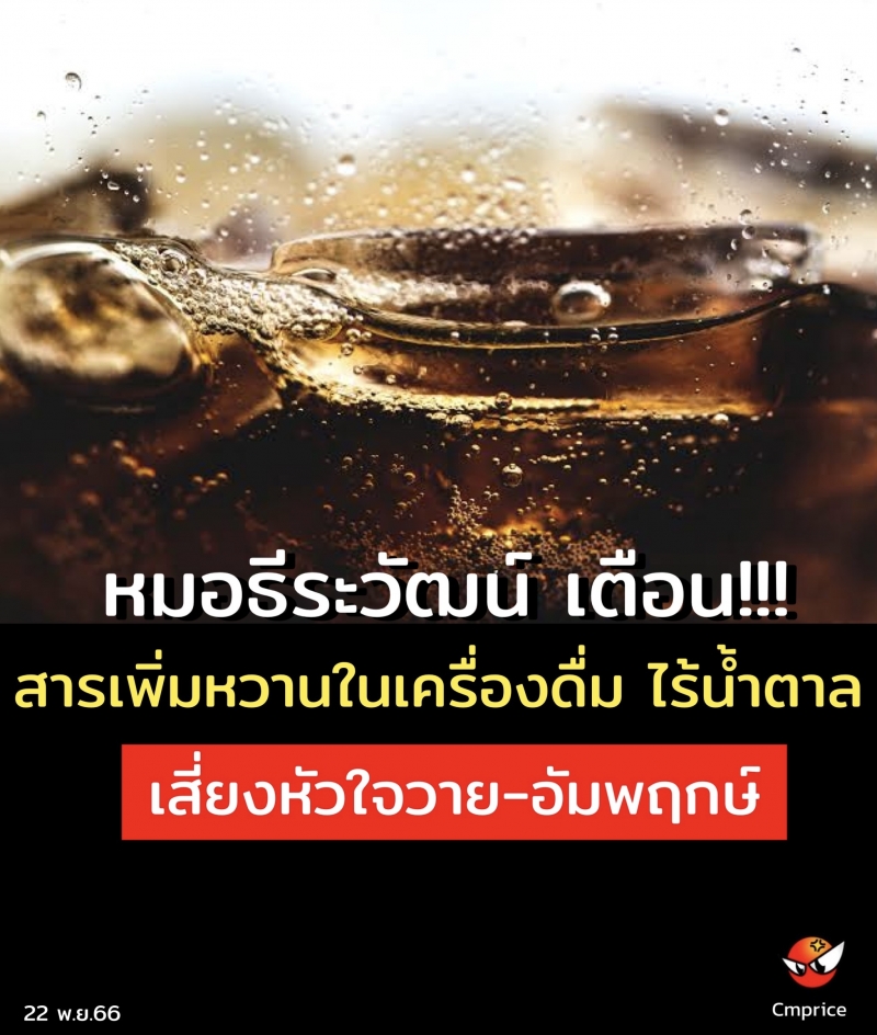 21 พ.ย.66- นพ.ธีระวัฒน์ เหมะจุฑา หัวหน้าศูนย์วิทยาศาสตร์สุขภาพโรคอุบัติใหม่ คณะแพทยศาสตร์ จุฬาลงกรณ์มหาวิทยาลัย โพสต์ข้อความให้ความรู้ผ่านเฟซบุ๊กส่วนตัวระบุ…..สารหวานในเครื่องดื่ม ไร้น้ำตาล erythritol เสี่ยงหัวใจวาย อัมพฤกษ์