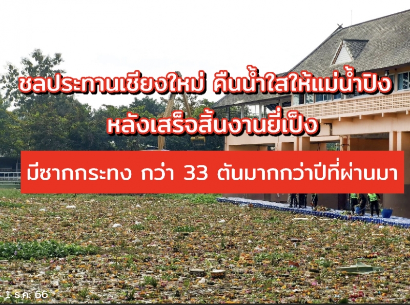 ชลประทานเชียงใหม่ คืนน้ำใสให้แม่น้ำปิงหลังเสร็จสิ้นงานยี่เป็ง มีซากกระทง กว่า 33 ตัน