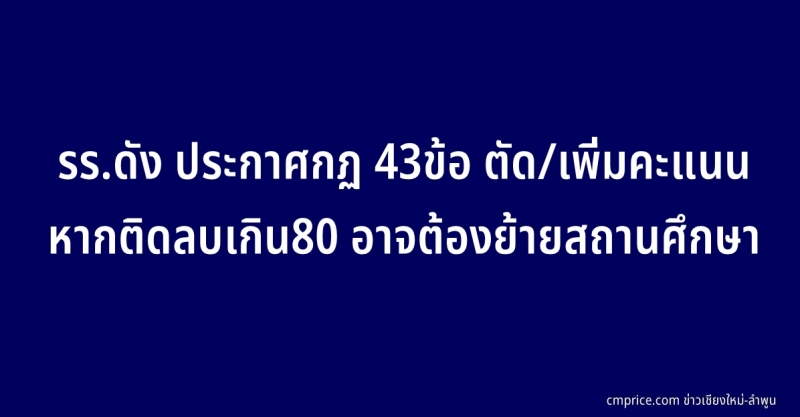 รร.ดัง ประกาศกฏ 43ข้อ ในการตัด/เพิ่มคะแนน หากติดลบเกิน80 อาจต้องย้ายสถานศึกษา