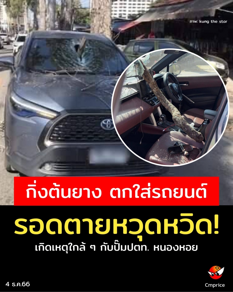 | • กิ่งต้นยาง ตกใส่รถยนต์ รอดตายหวุดหวิด! เหตุเกิดใกล้ๆกับปั๊มปตท. หนองหอย |
