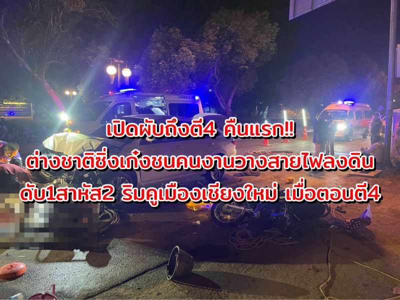 | • เปิดผับถึงตี4 คืนแรก!! ต่างชาติซิ่งเก๋งชนคนงานวางสายไฟลงดิน ดับ1สาหัส2 ริมคูเมืองเชียงใหม่ เมื่อตอนตี4 |