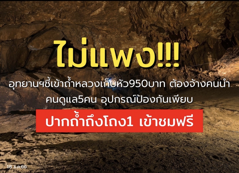 ไม่แพง! อุทยานฯชี้เข้าถ้ำหลวงเก็บหัว950บาท ต้องจ้างคนนำคนดูแล5คน อุปกรณ์ป้องกันเพียบ ปากถ้ำถึงโถง1ยังฟรี