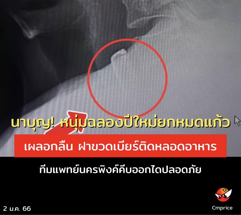 | • นาบุญ! หนุ่มฉลองปีใหม่ ยกหมดแก้วเผลอกลืนฝาขวดเบียร์ติดหลอดอาหาร ทีมแพทย์นครพิงค์คีบออกได้ปลอดภัย |